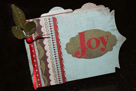 I decided to create a little booklet using this die and Basic Grey, Figgy Pudding papers. I used the main piece of the Treat Bag Topper as the spine of the booklet and cut pages to fit. The "spine" already had holes punched so I just had to add holes in the pages before tying it together with ribbon.